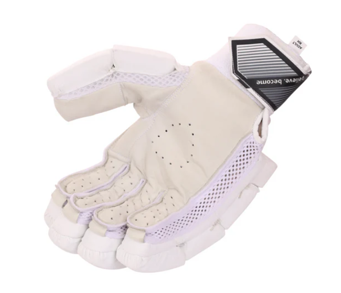 The SG LITEVATE White Batting Gloves are designed for cricket players who value premium quality, advanced protection, and unmatched comfort. Featuring a high-quality leather palm, these gloves deliver a superior grip and exceptional durability. The premium PVC finger rolls, combined with dual-density foam, provide excellent cushioning and flexibility for enhanced performance. The split thumb and three-piece side bar protection on the bottom hand ensure maximum support and safety during play. Additionally, the thermoplastic polyurethane shell on the first two fingers of the bottom hand offers extra protection.
